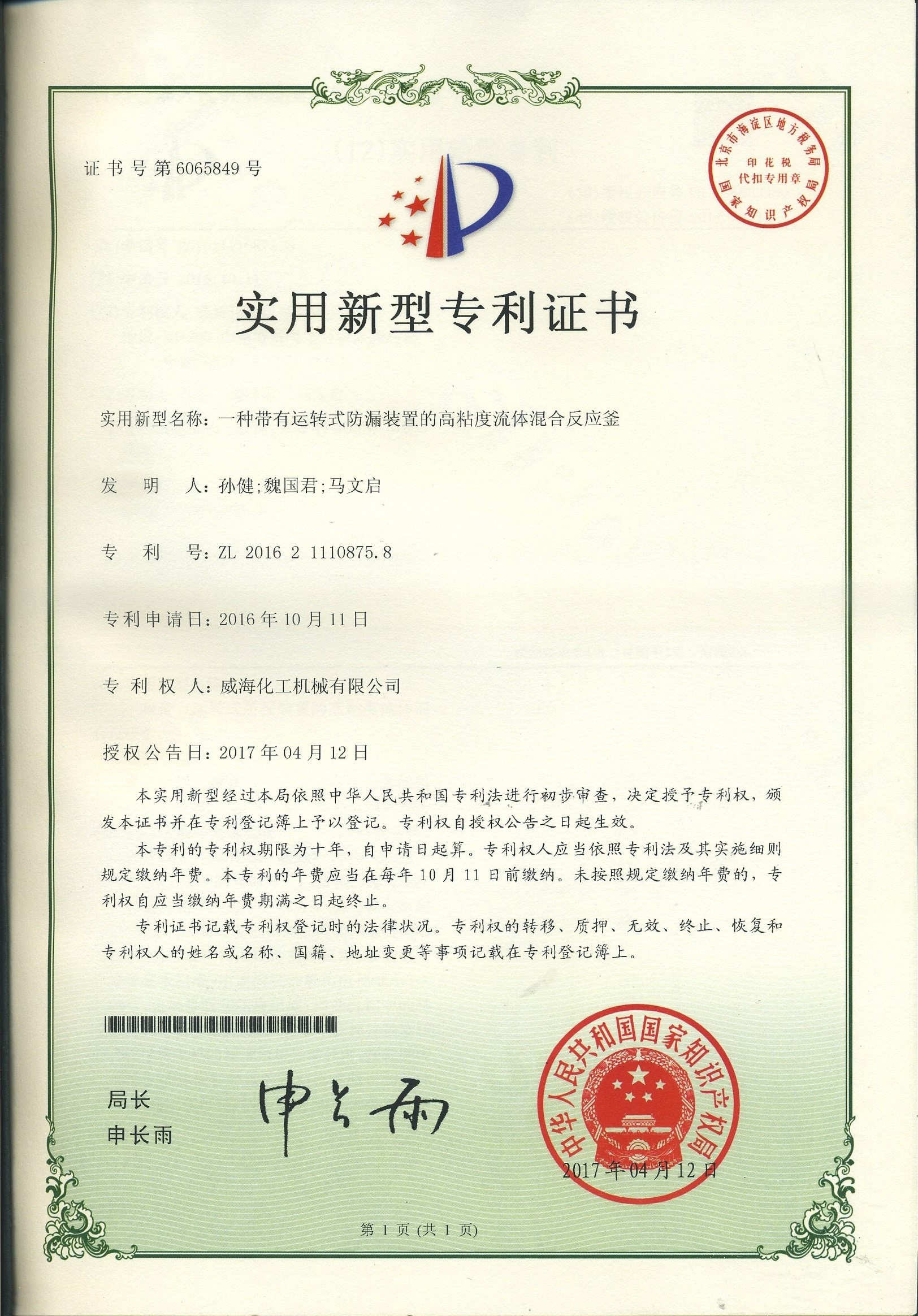 公司建有磁力驅(qū)動測試試驗(yàn)室、攪拌模擬試驗(yàn)室、反應(yīng)釜流體混合攪拌重點(diǎn)實(shí)驗(yàn)室等,科研力量雄厚。截至2024年,公司共承擔(dān)近280項(xiàng)自主/合作開發(fā)任務(wù),先后承擔(dān)省級新產(chǎn)品開發(fā)任務(wù)25項(xiàng),其中23項(xiàng)產(chǎn)品已達(dá)到國內(nèi)水平。獲得各類省、市級技術(shù)創(chuàng)新獎30余項(xiàng);參與起草、修訂標(biāo)準(zhǔn)共8項(xiàng),GB/T30098-2013實(shí)驗(yàn)室用磁力驅(qū)動反應(yīng)釜標(biāo)準(zhǔn)、HG/T3648-2011磁力驅(qū)動反應(yīng)釜標(biāo)準(zhǔn)、GB/T29254-2012實(shí)驗(yàn)室反應(yīng)釜用控制器標(biāo)準(zhǔn)、NB/T47002.1~47002.4-2019壓力容器用復(fù)合板;已獲得授權(quán)專利95項(xiàng),其中發(fā)明專利19項(xiàng),實(shí)用新型專利69項(xiàng),外觀專利7項(xiàng);擁有專有技術(shù)和核心技術(shù)40余項(xiàng)。
